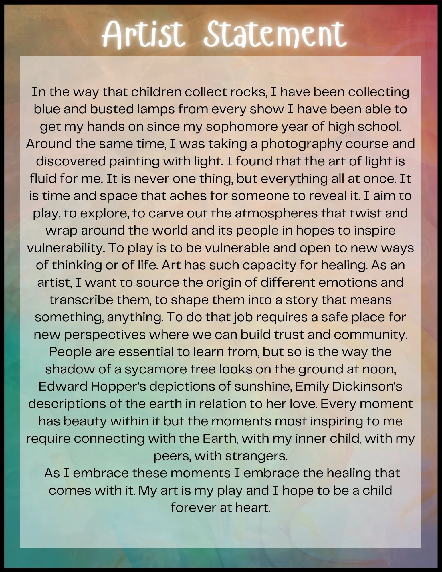Learn about me… “You don’t have to be a professional to have an opinion about a rainbow” — Olafur Eliasson